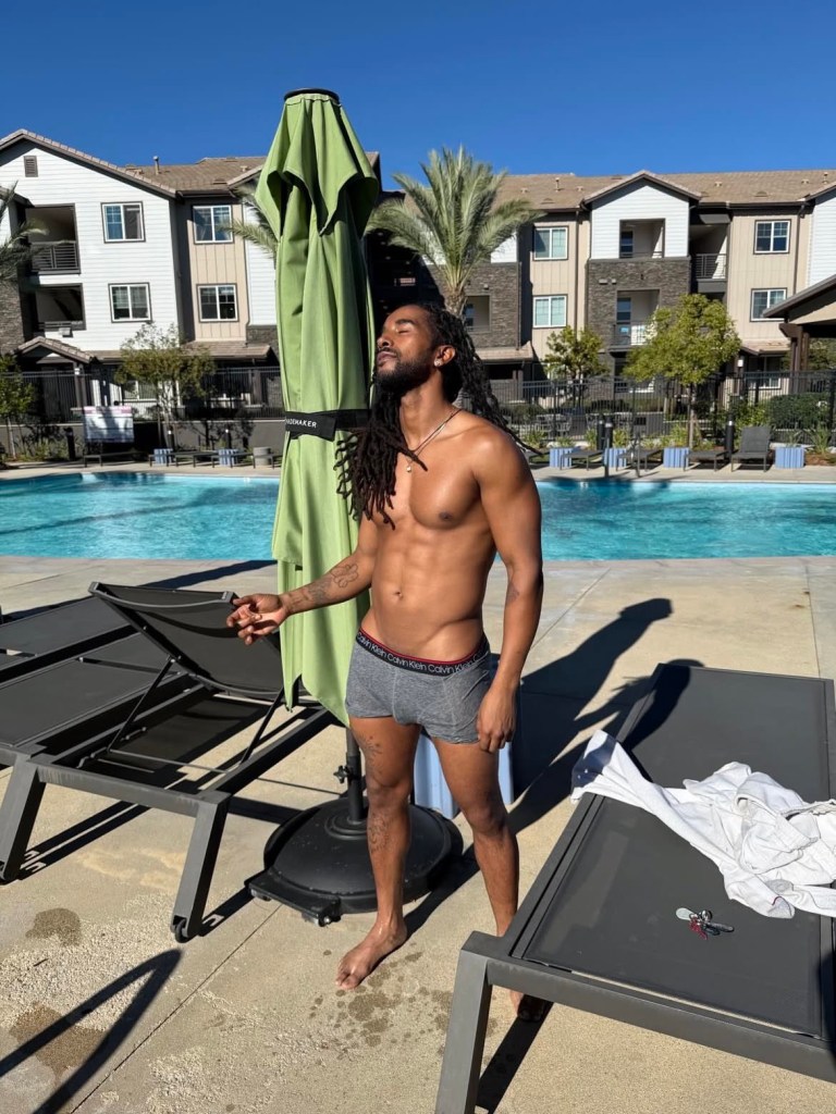 O’Ryan strips down to his skivvies, enjoying the New Year’s sun!!