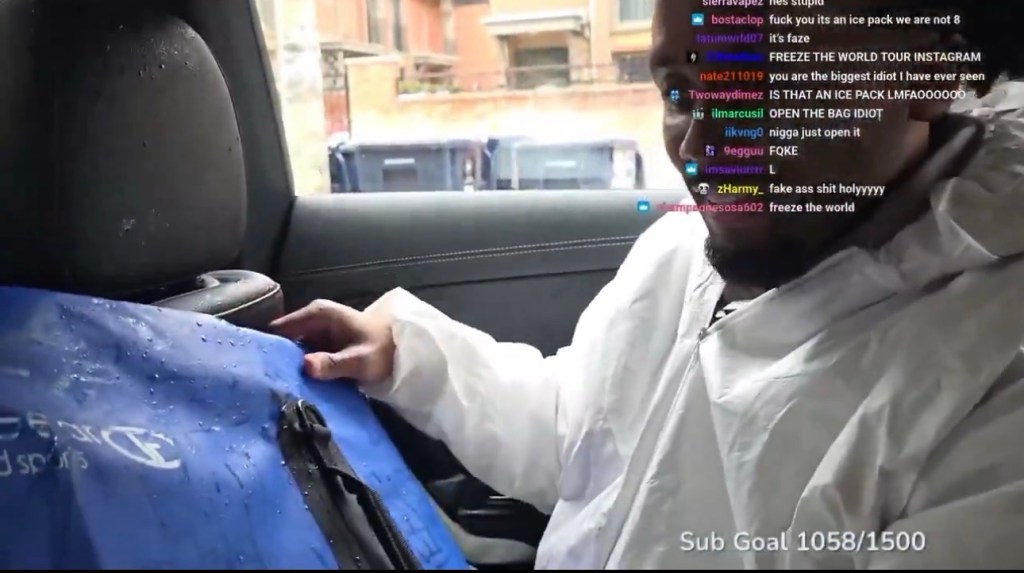A social media streamer has found the mystery bag stored inside Drake’s massive ice block!
